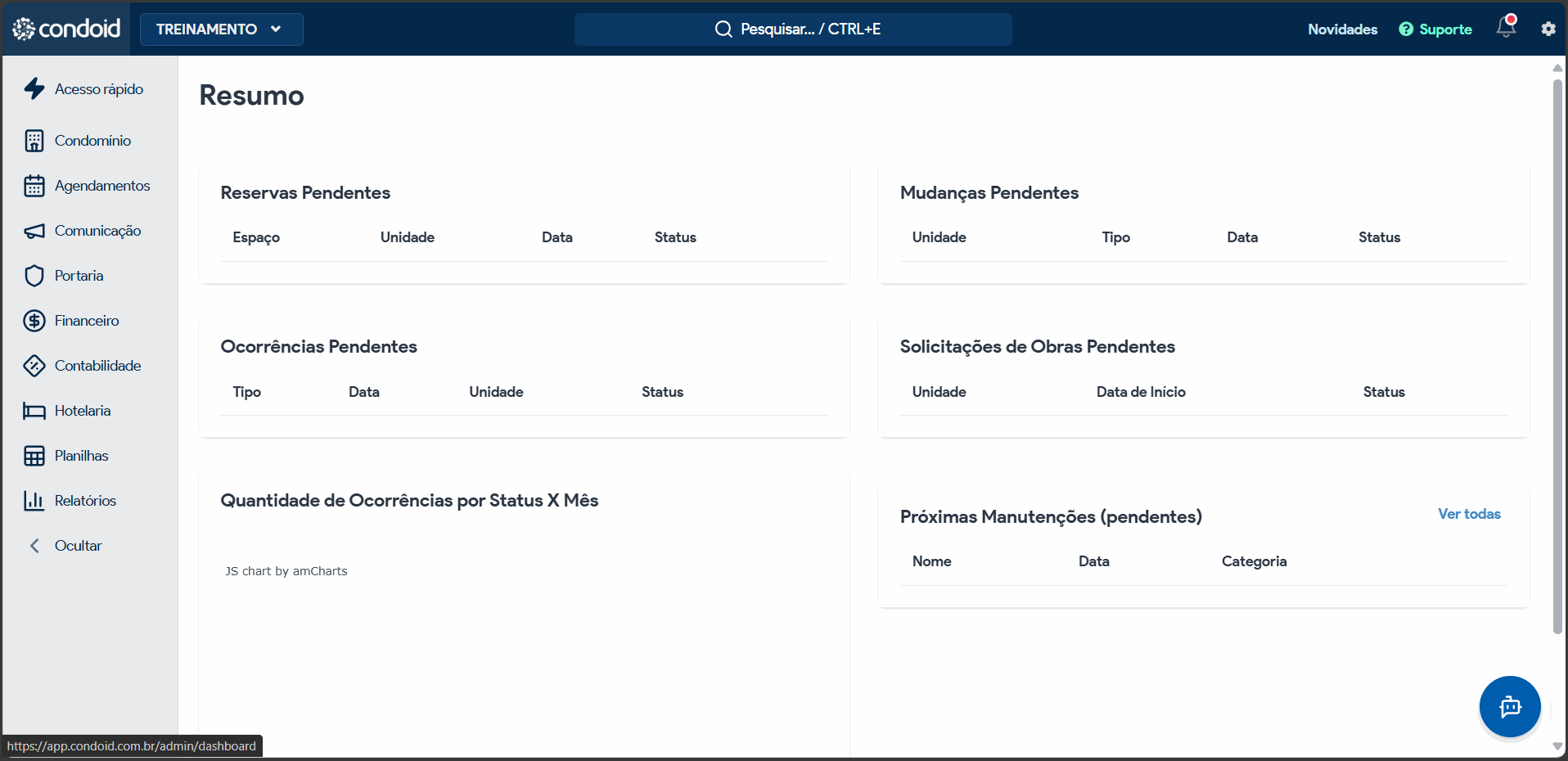 No menu lateral esquerdo da tela, clique em "Financeiro".