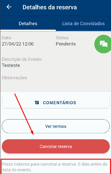 Na parte inferior da tela, toque no botão "Cancelar Reserva".
